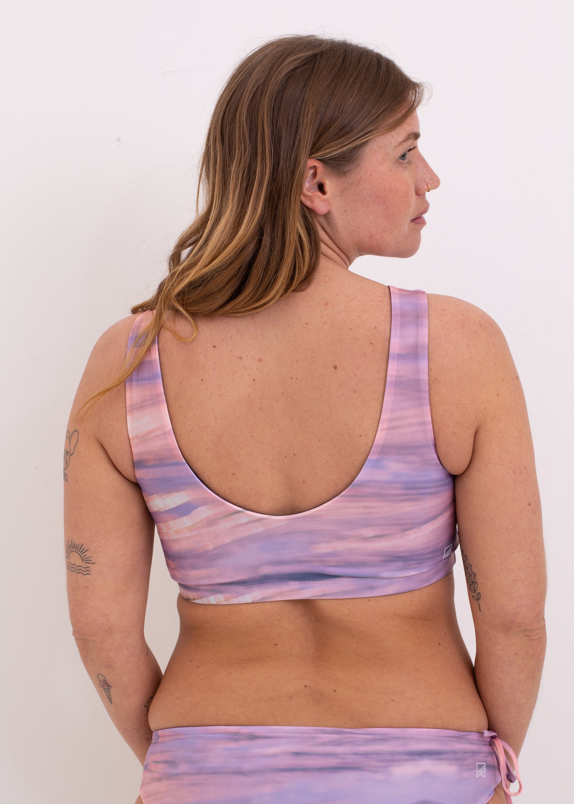 Surfing, Yoga or any sporting activity is even more fun with our Top "JESS". The high neckline protects from the sun, leaves everything in place doing handstand and the low cut back makes it airy and easy to move in.